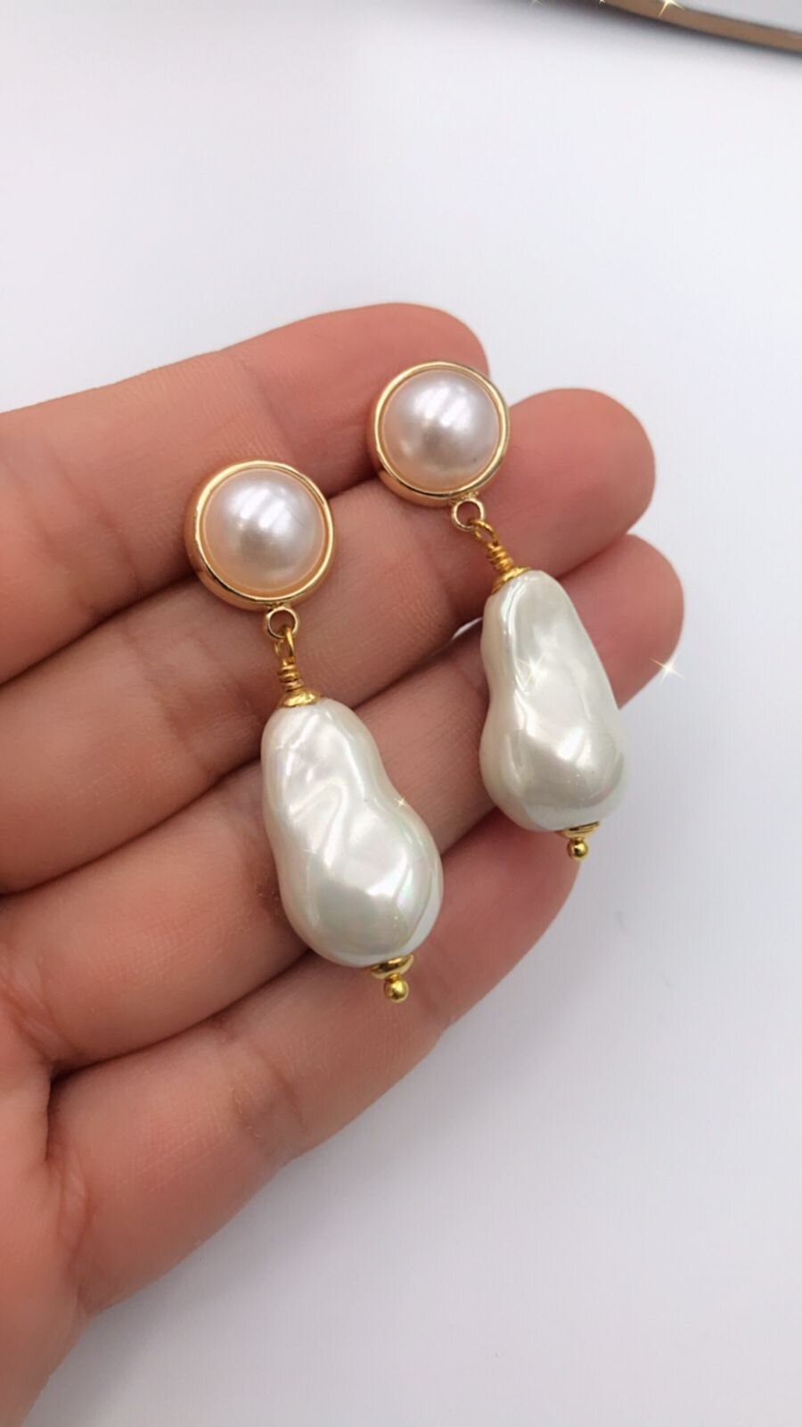 Aretes dorados Goldfilled y perla shell. Seguro de pin y mariposa.